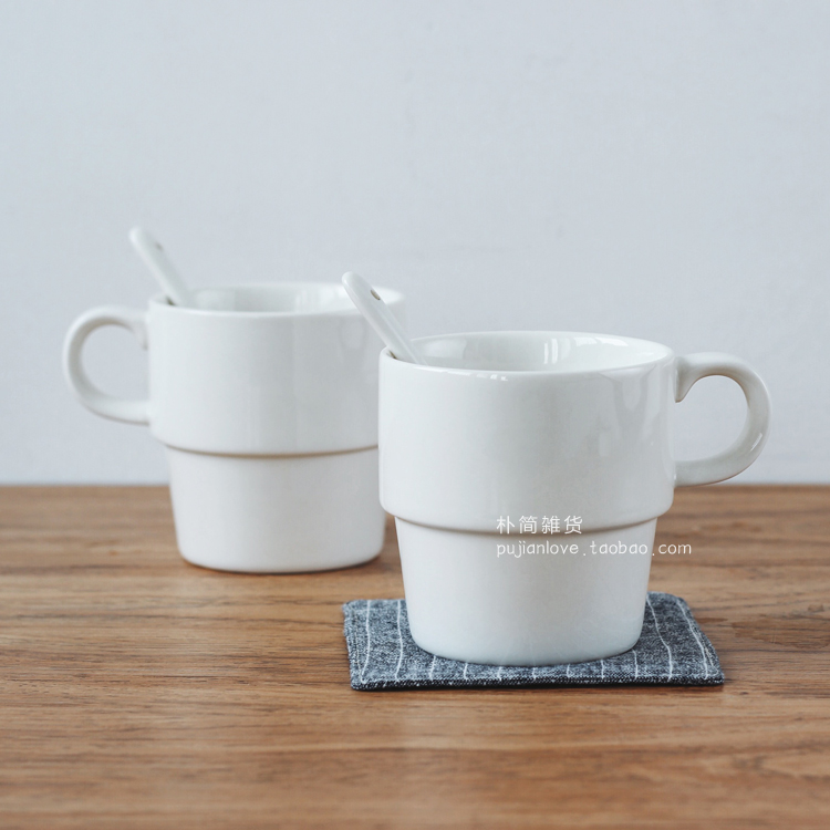 樸簡 外貿簡約日式陶瓷白色馬克杯 牛奶杯果汁杯子 咖啡杯早餐杯