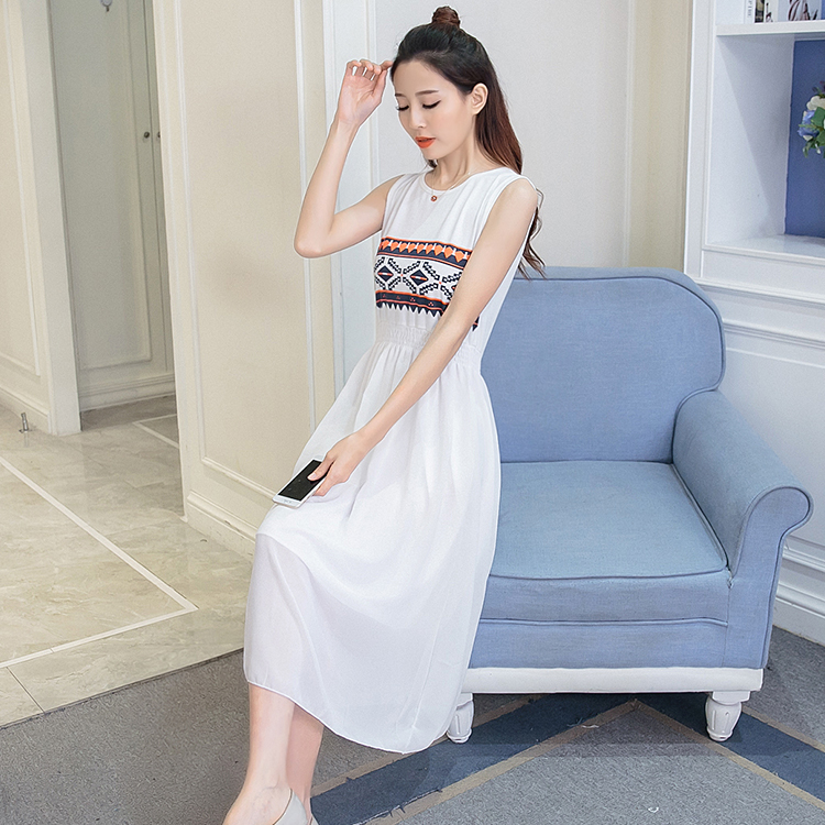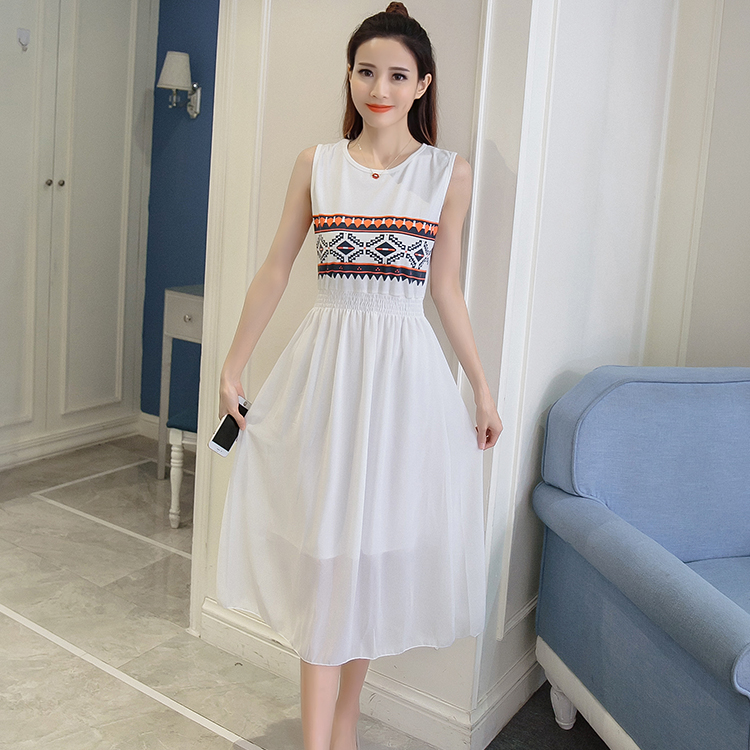 / 夏季女裝新款時尚印花無袖背心裙顯瘦大碼沙灘長裙子雪紡連衣裙夏