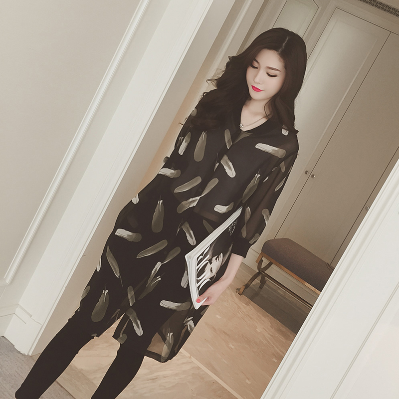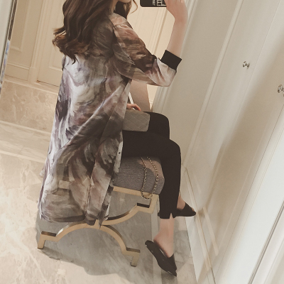/ 夏季新款韓版女裝中長款雪紡印花披肩開衫薄外套寬松沙灘防曬衣潮
