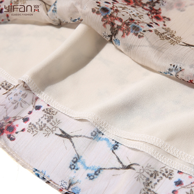 夏季女碎花短袖系帶雙層雪紡衫韓版寬松甜美荷葉邊七分喇叭袖上衣