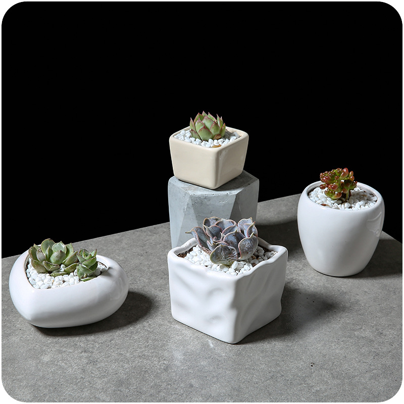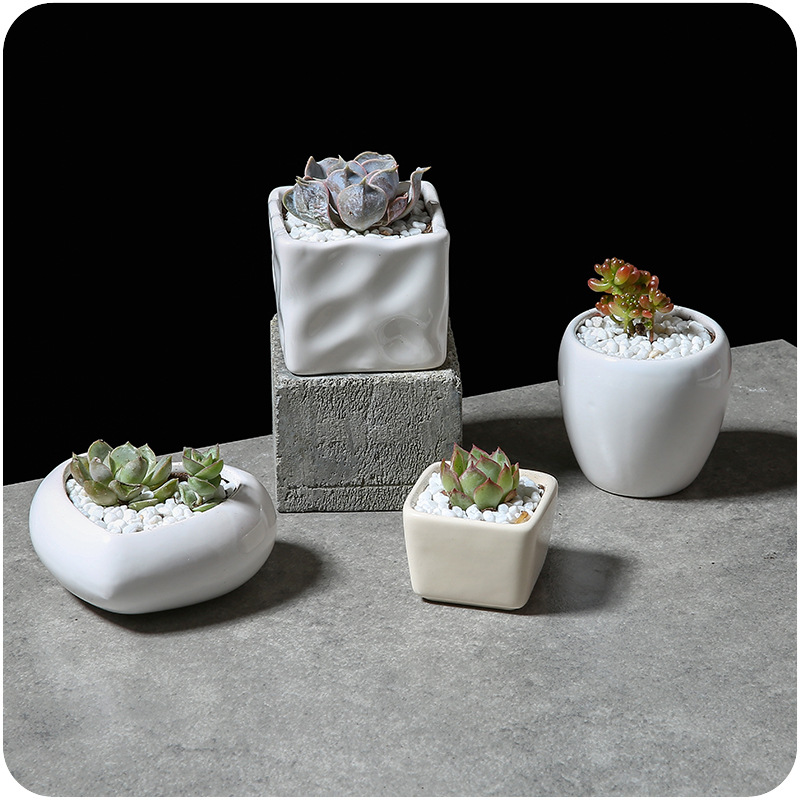 / 創意方型花盆簡約多款愛心花盆多肉植物白瓷花器陶瓷圓型花器純色