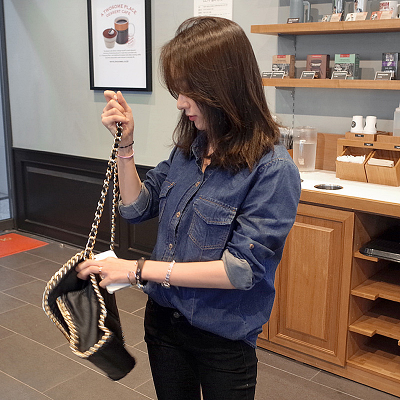 2016春裝新款牛仔襯衫大碼女長袖外套薄韓版上衣顯瘦牛仔襯衣女裝