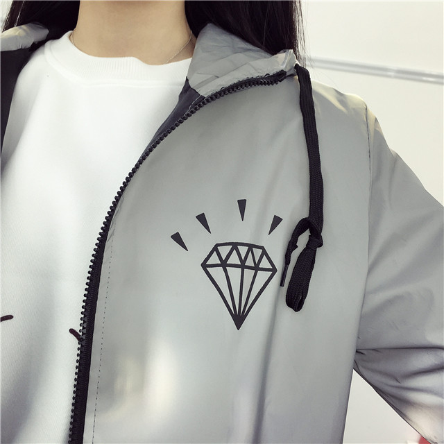 春秋季韓版發光夜光沖鋒風衣日系潮流學生3M反光衣服男女熒光外套