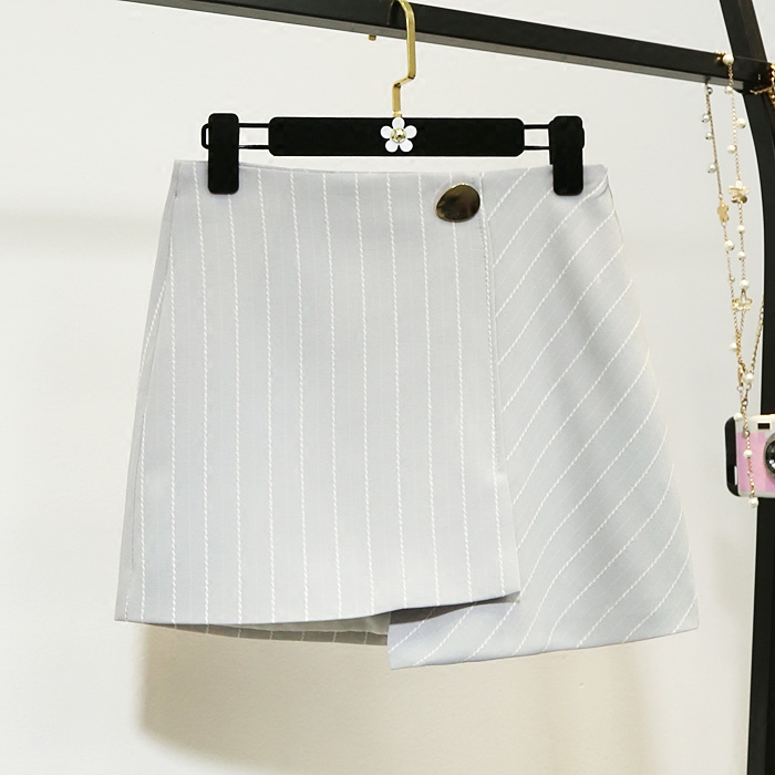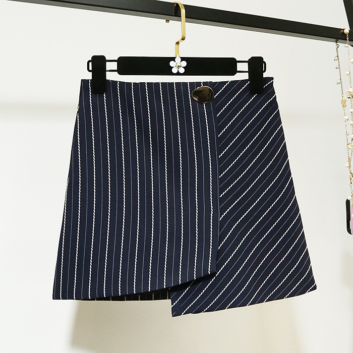 春夏季新品韓版不規則半身裙高腰顯瘦A字條紋包臀開叉短裙女