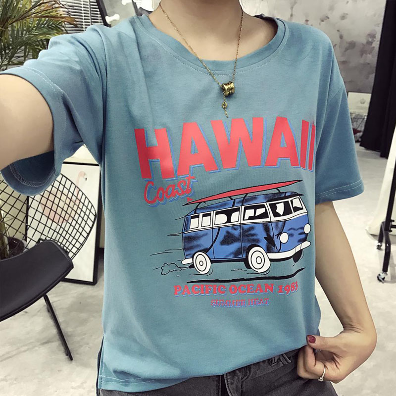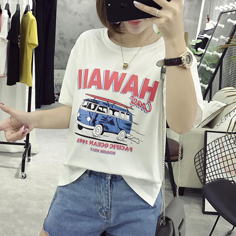 / 學院風春夏款卡通印花短袖T恤女寬松夏季顯瘦上衣潮百搭大碼體恤