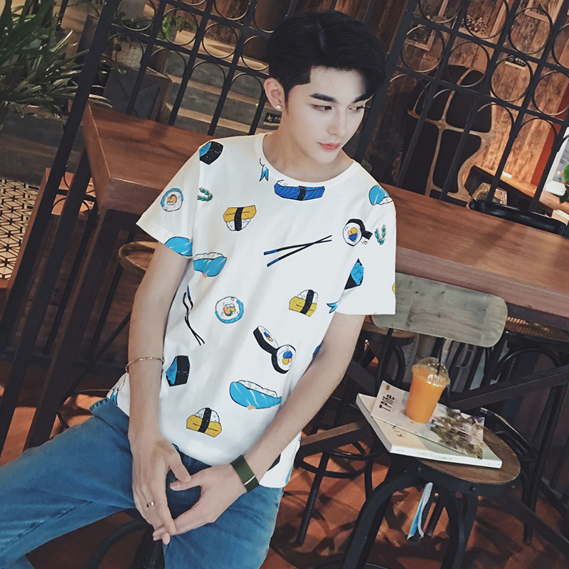 / 原創卡通食物印花修身圓領男士韓版短袖T恤潮