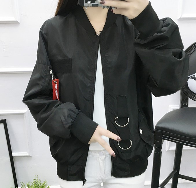 棒球服女 ulzzang短外套韓版bf原宿風織帶拼接衛衣袖飛行員夾克潮