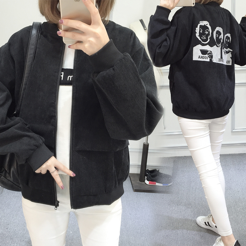 2017春秋新款寬松顯瘦燈芯絨外套女韓版長袖純色短款夾克上衣學生