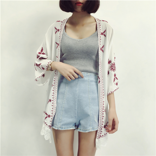 / 夏季新款韓版女裝大碼罩衫上衣薄外套防曬衣沙灘披肩開衫雪紡衫女