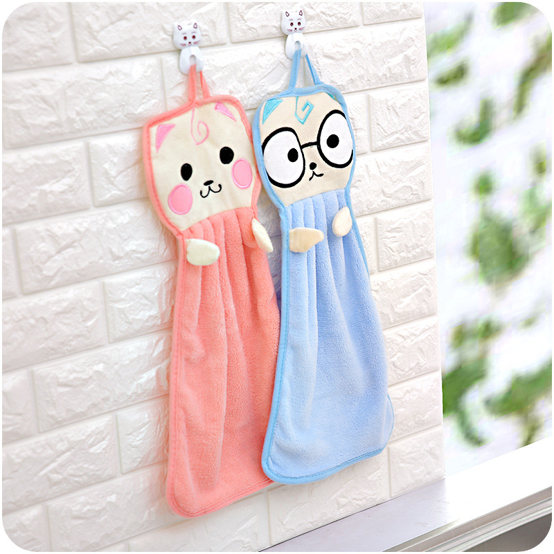 / 創意毛巾卡通可愛小貓加厚掛式擦手巾廚房浴室吸水擦手布抹布洗碗