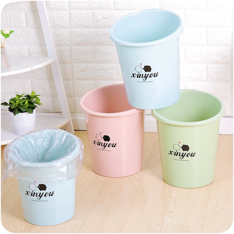 / 加厚垃圾桶居家用簡約印花歐式斜口易提塑料收納桶結實大號小號筒