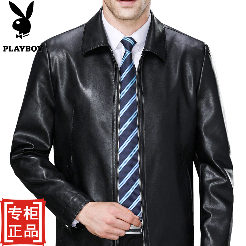 秋冬新款花花公子中年男士真皮夾克商務休閑男裝翻領綿羊皮衣外套