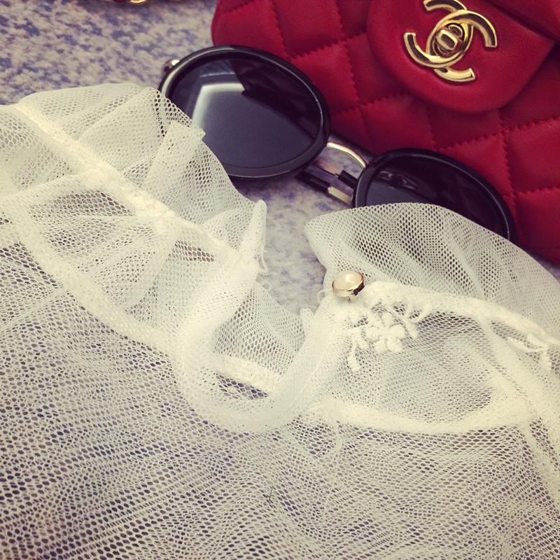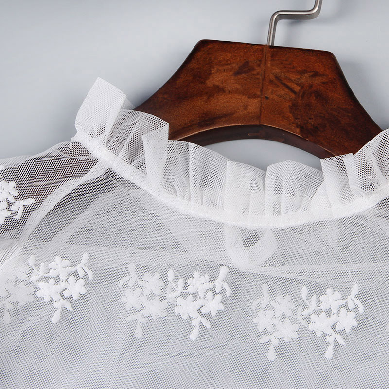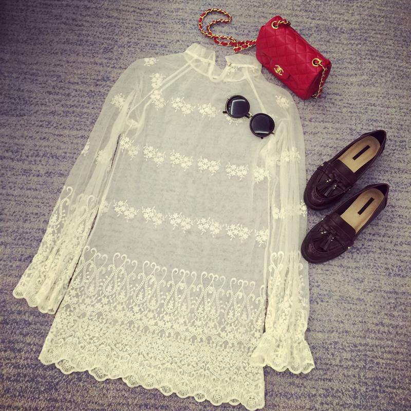 / 紗網蕾絲打底衫女長袖2017春夏新款潮韓版中長款鏤空透視立領上衣