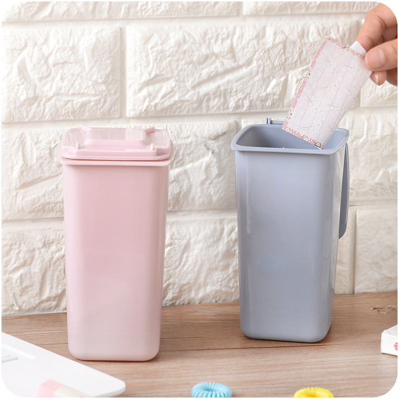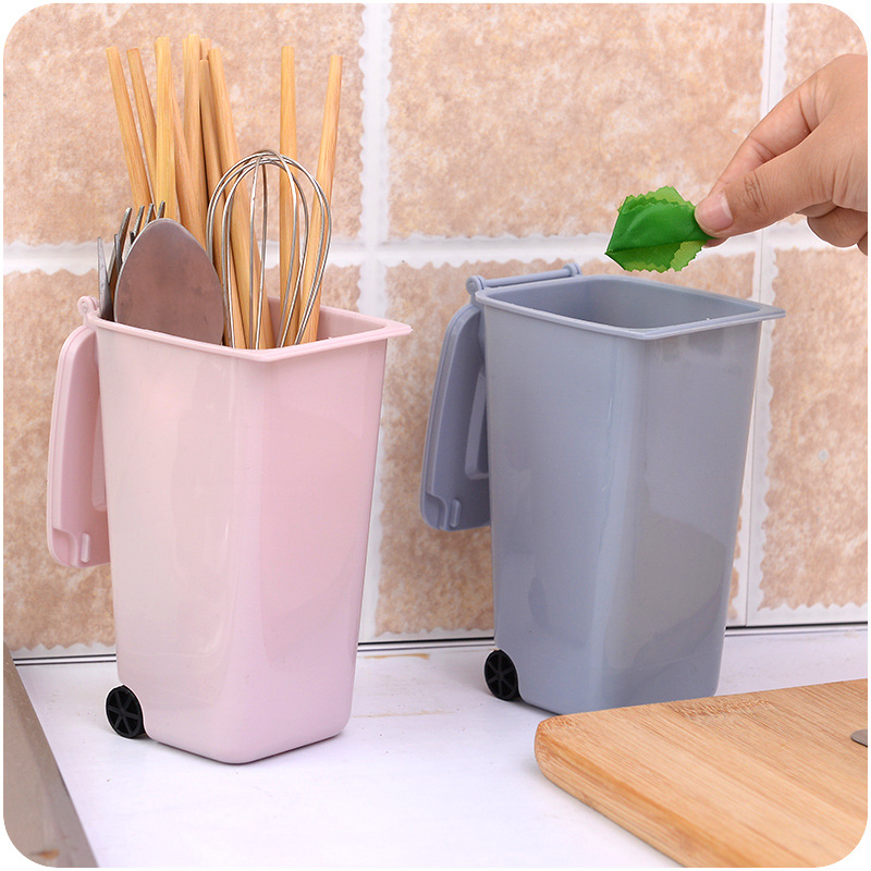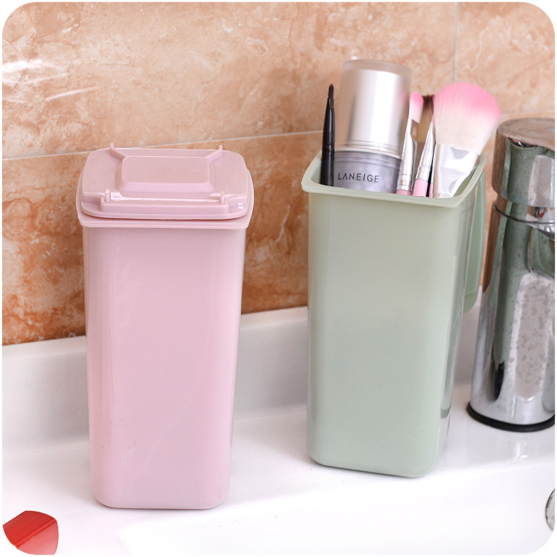 / 滑輪清潔車造型桌面垃圾筒便攜式帶蓋文具化妝品多功能迷你收納筒
