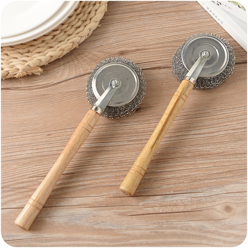 / 鋼絲球可拆木柄廚房鍋鋼絲長柄鍋刷不粘油清潔死角不臟手洗碗鍋刷