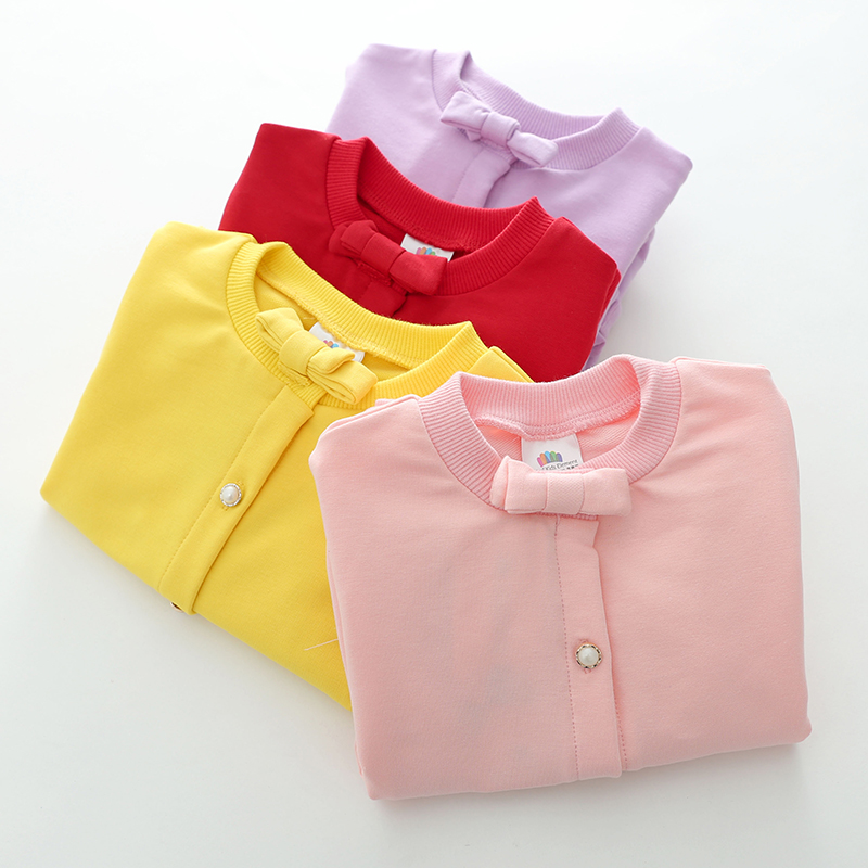 / 寶寶純色開衫 秋裝新款童裝女童裝兒童蝴蝶結外套潮wt-6117