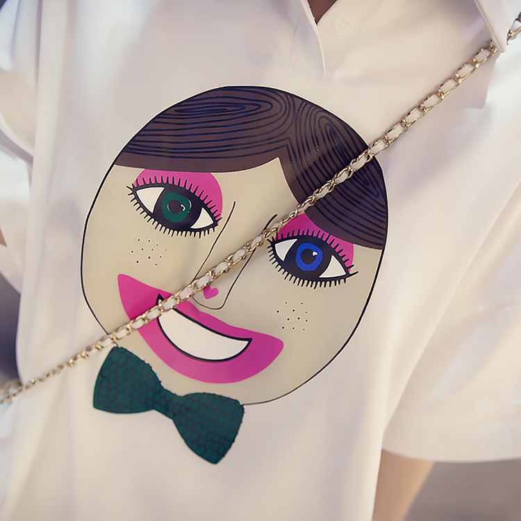 夏季大碼女裝韓版短袖襯衫胖mm中長款印花娃娃上衣寬松顯瘦襯衣潮