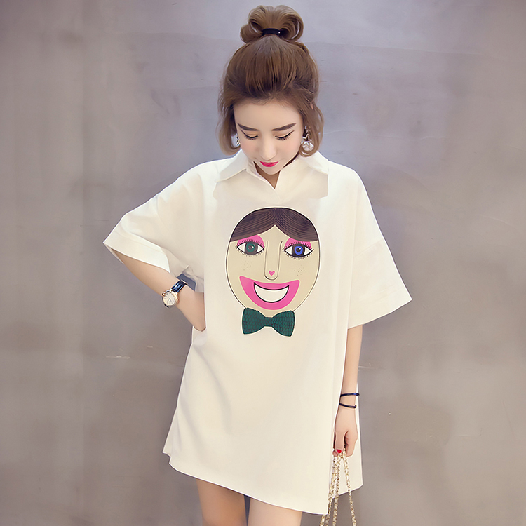 名稱 翻領卡通印花短袖寬松顯瘦連衣裙