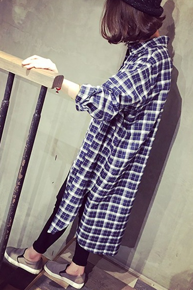 / 長款格子襯衫女寬松復古韓國過膝外套韓版原宿春裝潮學生襯衣顯瘦
