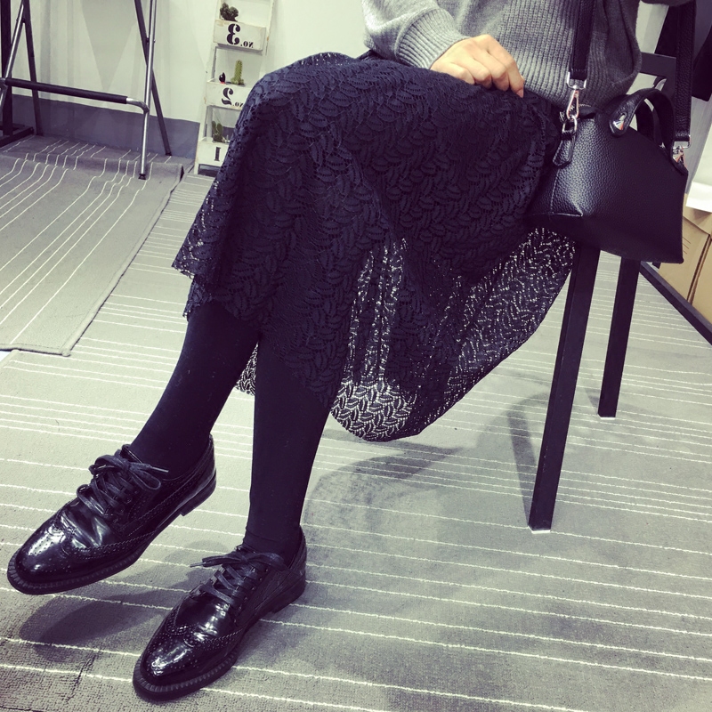 美亦隨興2017春夏季韓版百搭甜美打底裙鏤空蕾絲半身裙打底長裙