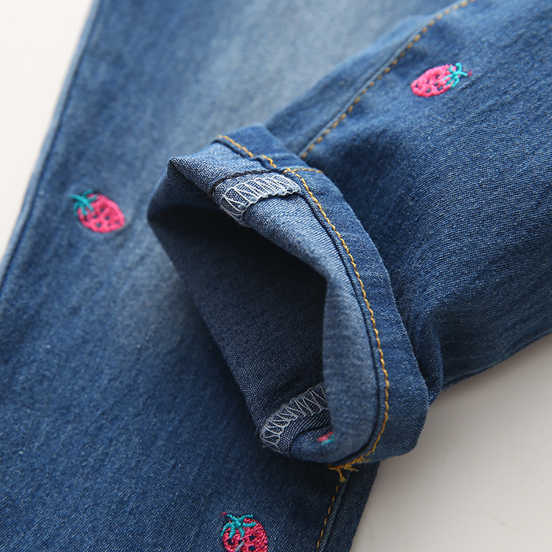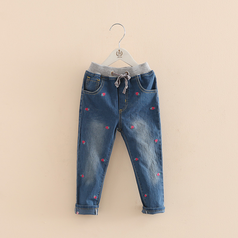 寶寶草莓牛仔褲 春裝韓版新款童裝女童裝兒童抽繩褲子kz-7266