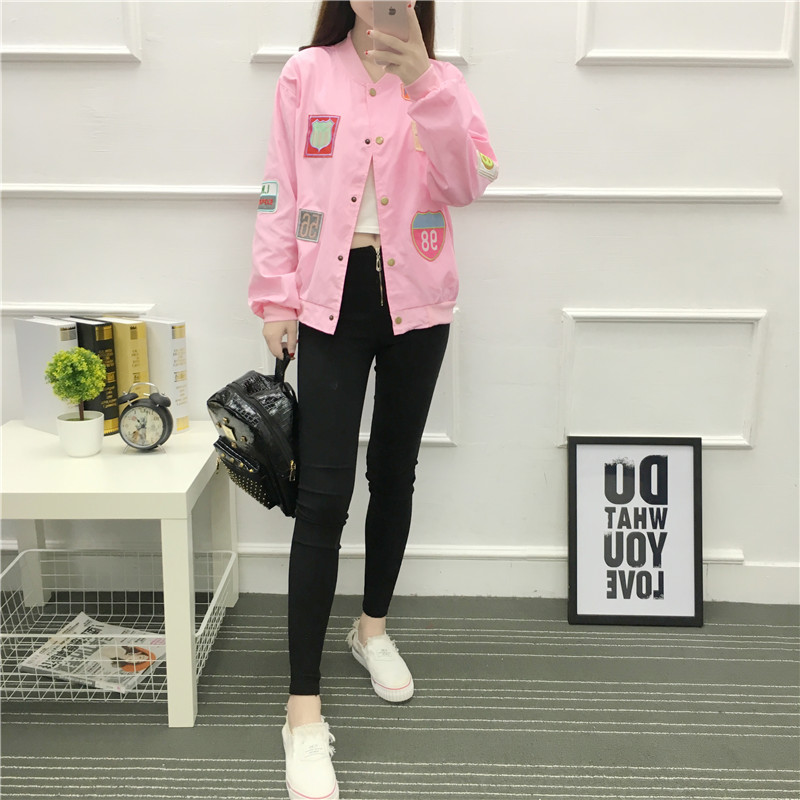 / 女裝棒球服春秋外衣韓版bf原宿風字母寬松百搭學生短外套夾克衫潮
