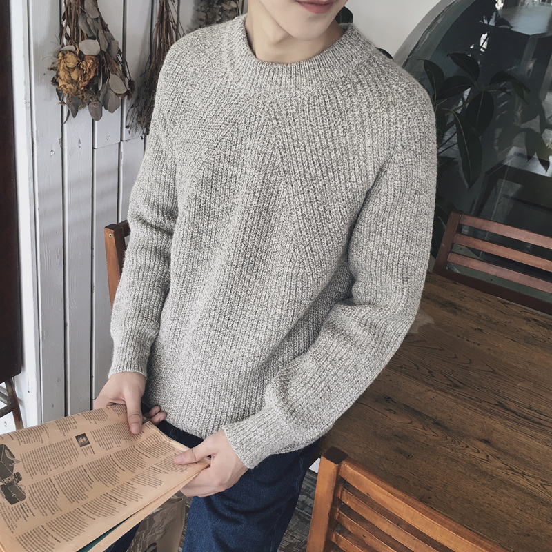 原創純色插肩袖套頭毛衣日系秋冬寬松港風針織衫男