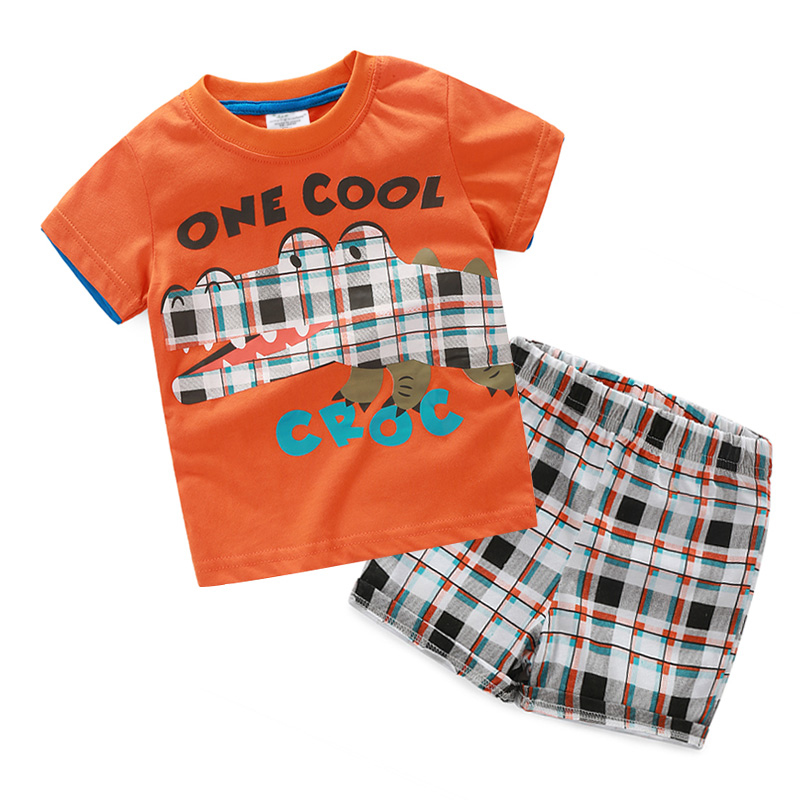 兒童格子套裝 夏裝新款男童童裝短袖T恤短褲兩件套tz-2982