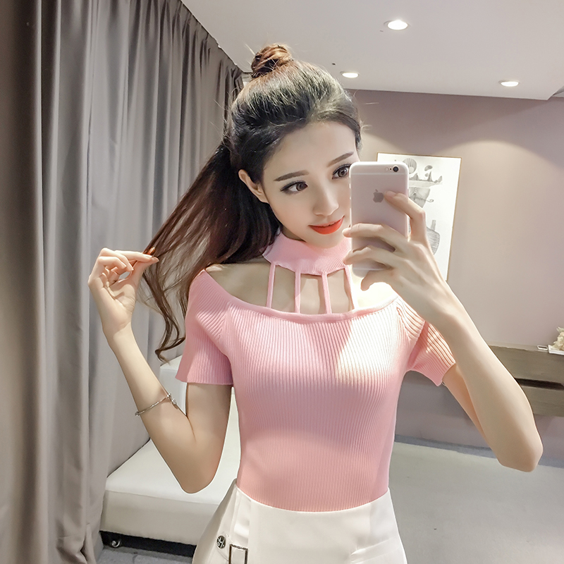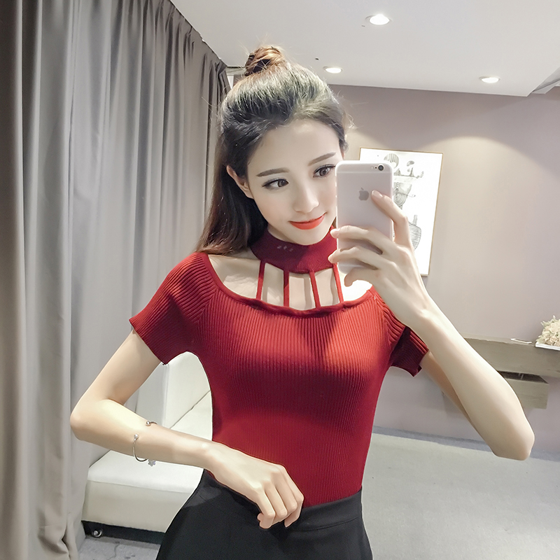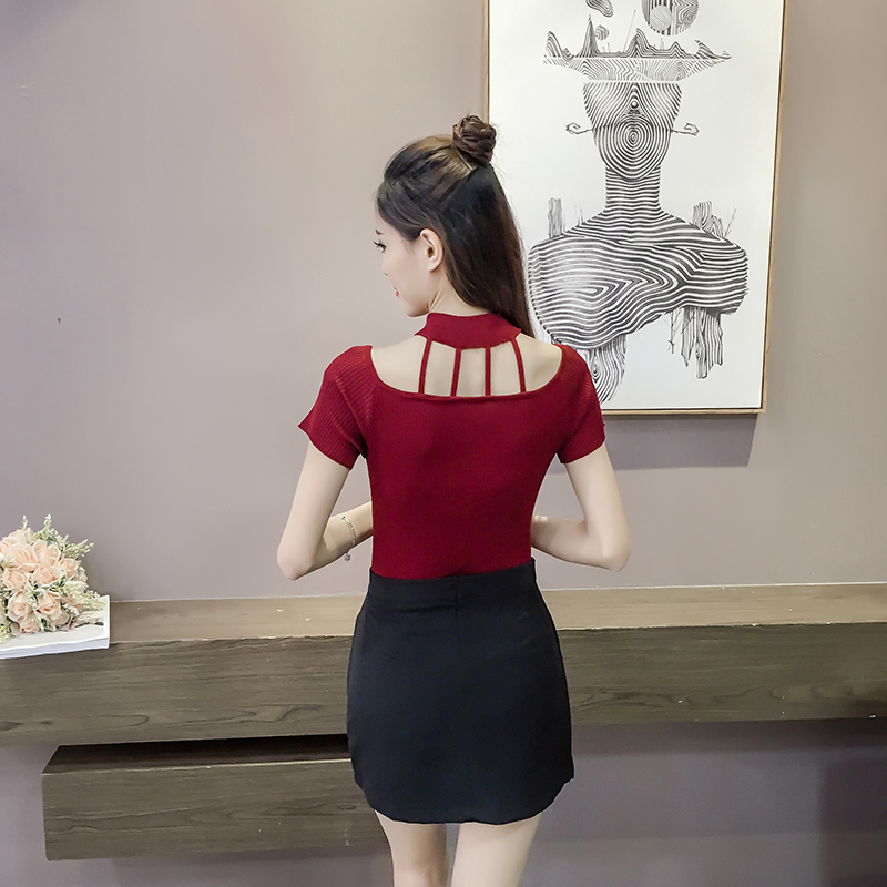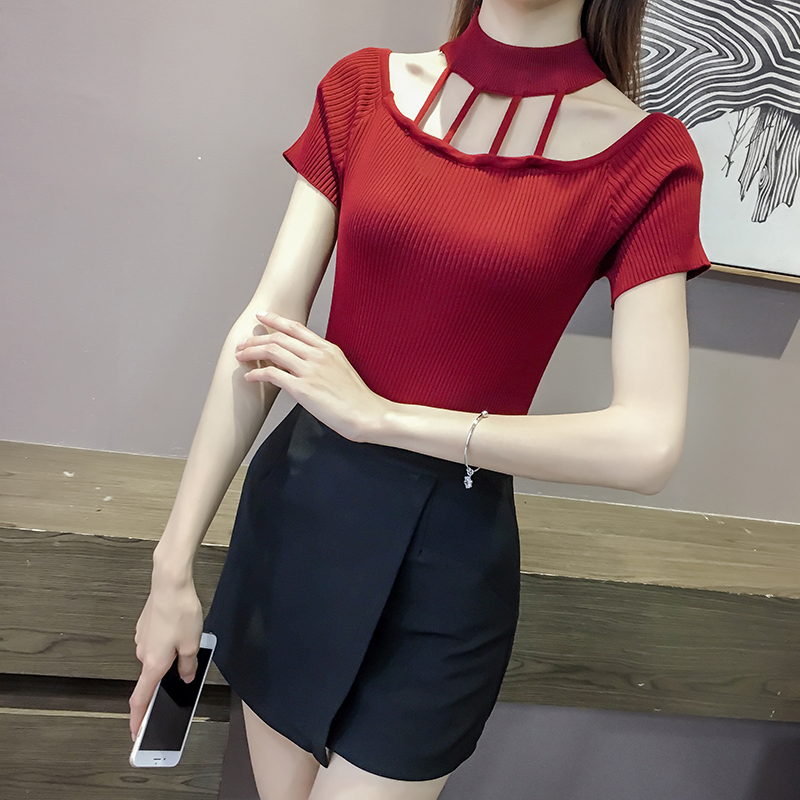 / 韓版夏裝新款百搭鏤空圓領上衣修身顯瘦T恤女士短袖針織打底小衫