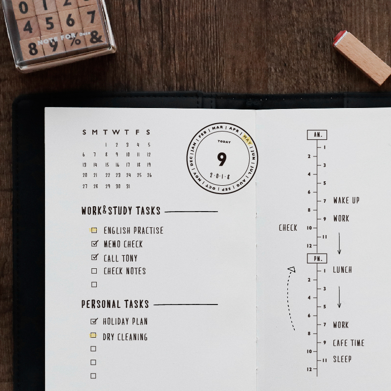 / 云木雜貨 基礎手賬木質印章復古時間計劃打卡手帳工具文具