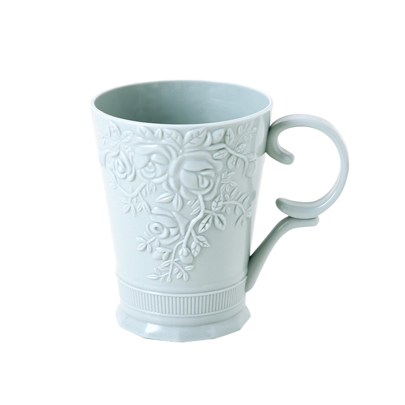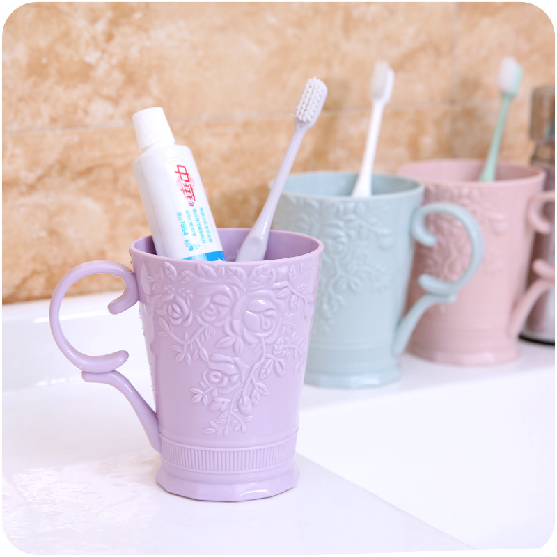 / 牙刷杯子 素色雕花帶手柄漱口情侶牙刷杯創意塑料洗漱刷牙杯男女