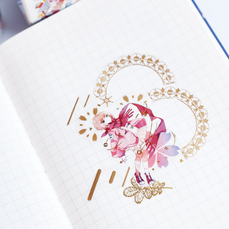 / 云木雜貨 甜美女孩和紙膠帶燙金特殊油墨白墨帶離型紙diy手賬貼紙
