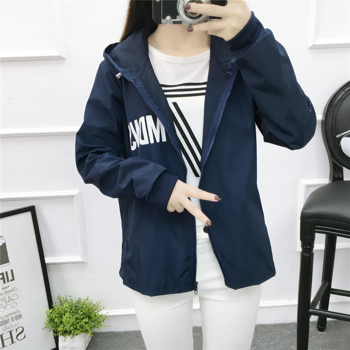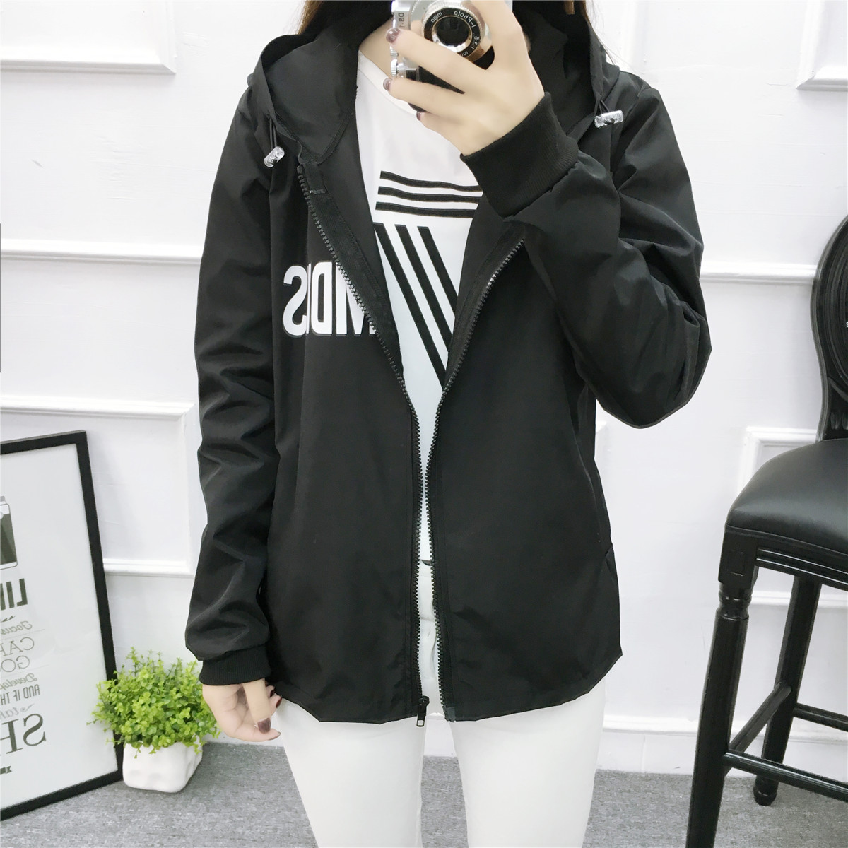 / 外套女春秋韓版學生寬松原宿bf字母印花百搭短款風衣夾克棒球服潮