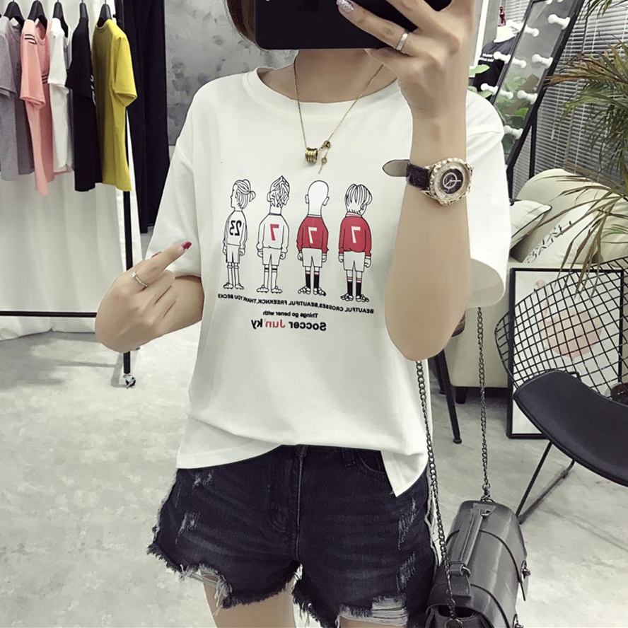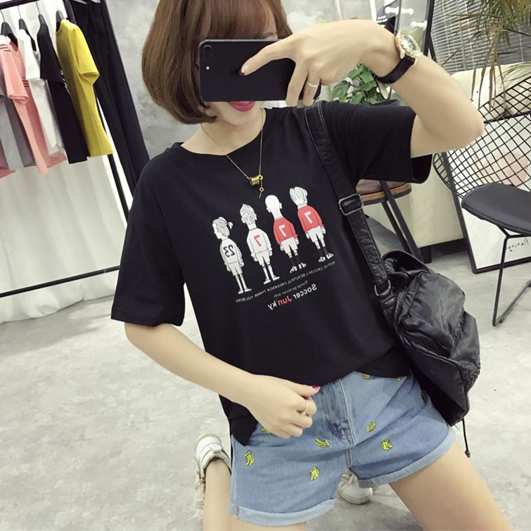 韓版夏季圓領上衣女裝學生印花短袖女白色打底衫潮寬松半袖T恤女