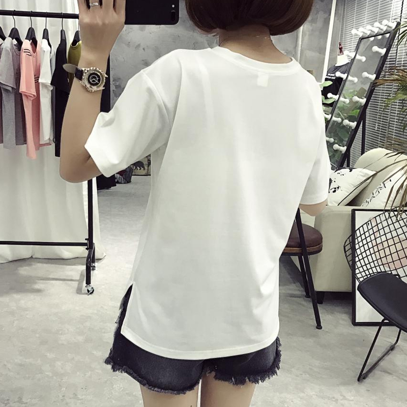 / 韓版夏季圓領上衣女裝學生印花短袖女白色打底衫潮寬松半袖T恤女